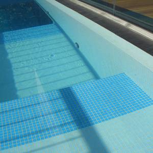 ↑ ABOVEThis pool is fully tiled in GC155 Pale Blue glass tiles. In the second set of 4 photos GC148 Mid Blue has been used as the step marker tile. | |||