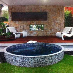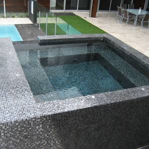 ↑ ABOVESpa and feature pond (last photo above) were fully tiled in GC099 Black Caramel Glass Mosaics. | |||