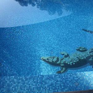↑ ABOVEFully tiled pool in GCR315 Sky Crystal Pearl Blend with a 2 meter crocodile inlaid mosaic picture (hand cut) | |||