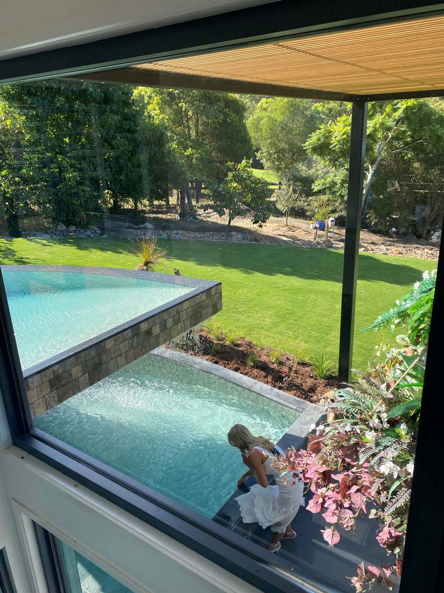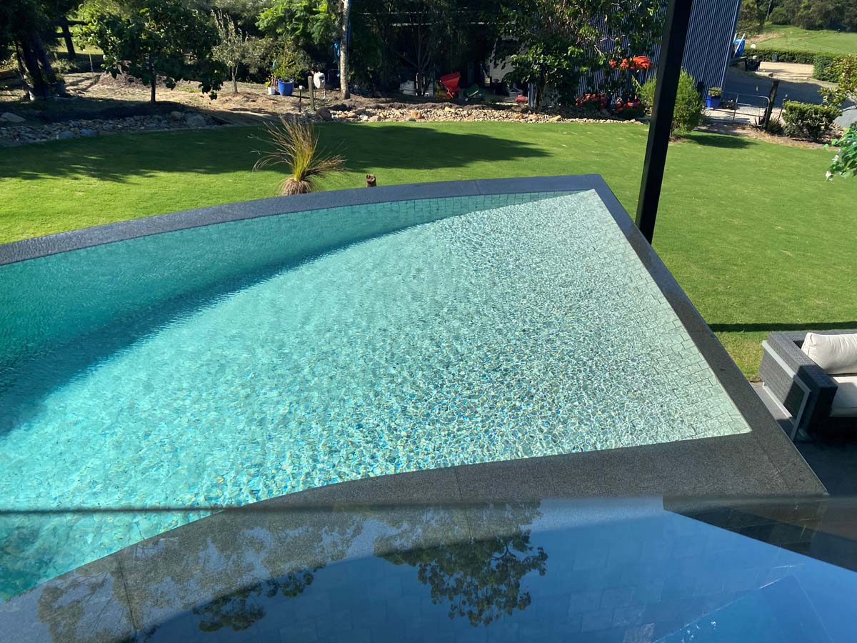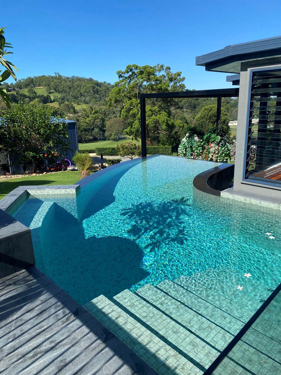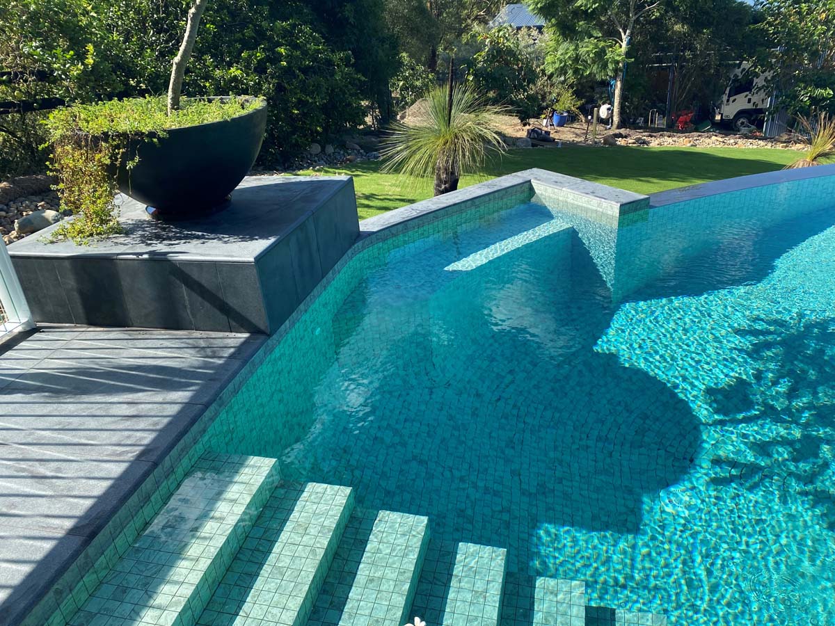 Tiling your pool interior in this large grey-green ceramic tile will achieve a similar effect to the natural stone tiles which are laid in Balinese pools without the future maintenance challenges.