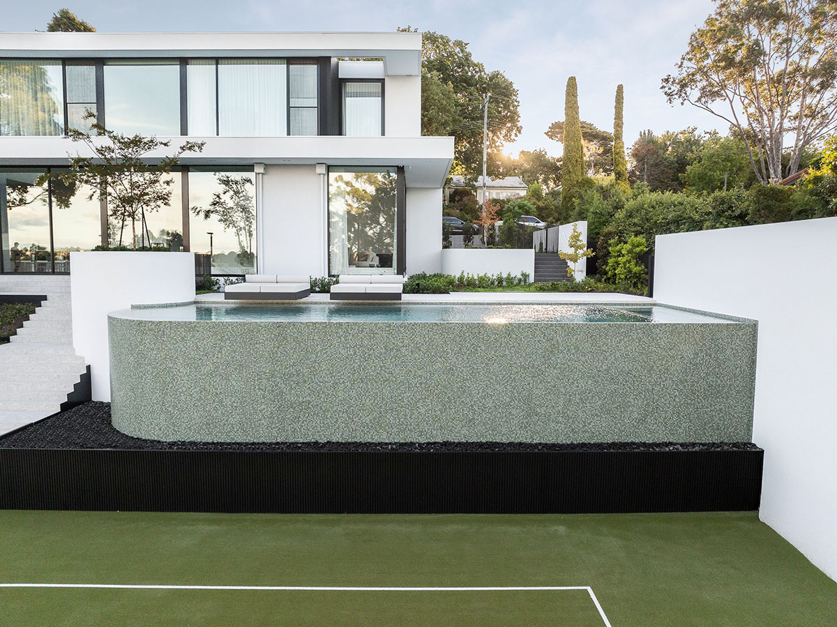 Ubud Green Wavy is a glossy light grey, grey-green and dark green patterned ceramic tile featuring a gently undulating, softly wavy, three-dimensional surface. If used to fully-tile, Ubud Green will create a similar water colour for which Balinese pools are famed. Create your own backyard sanctuary with Ubud Green Gloss.