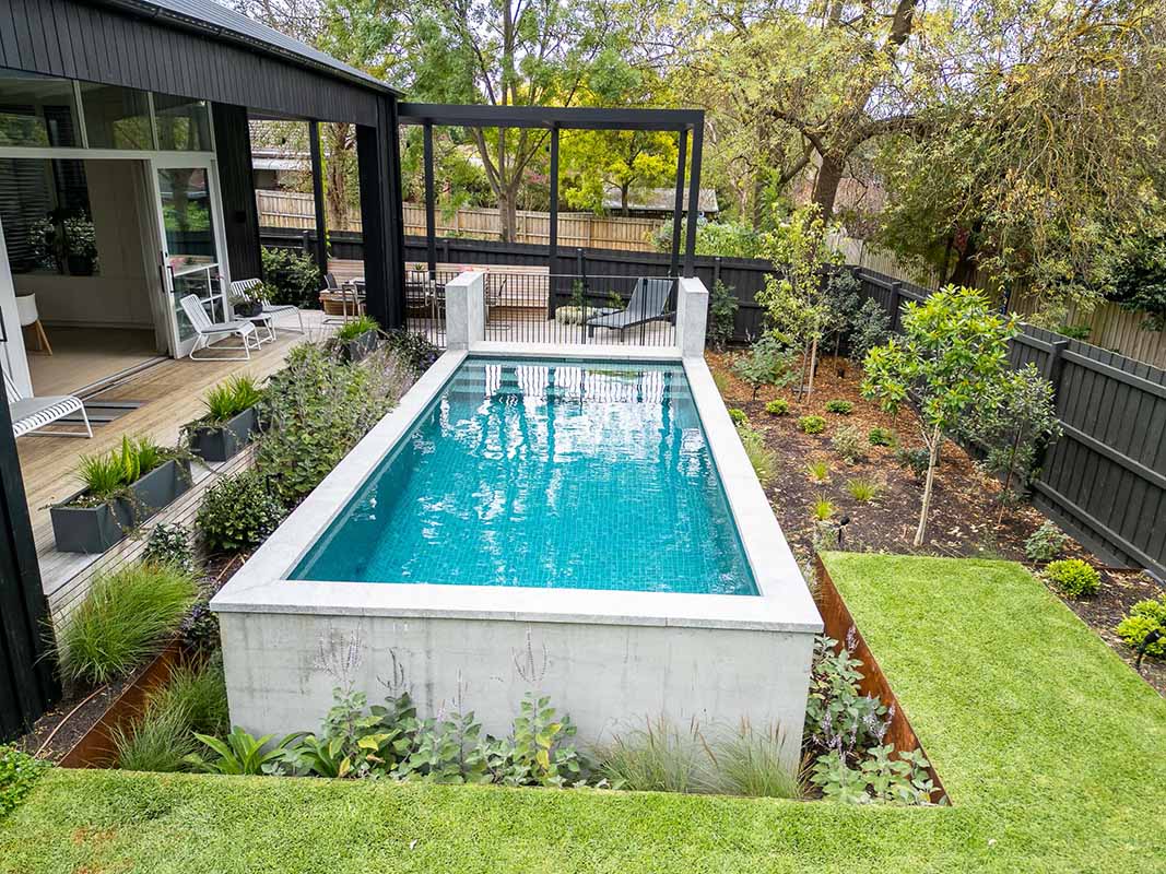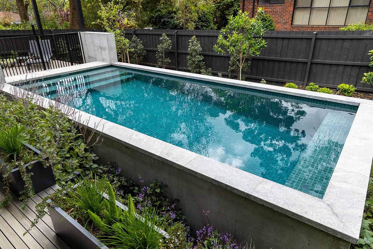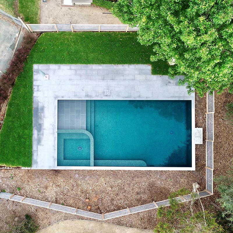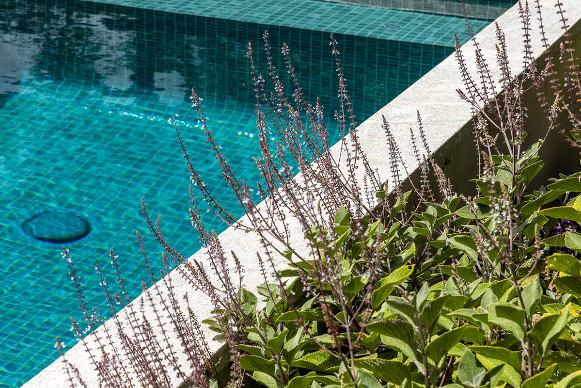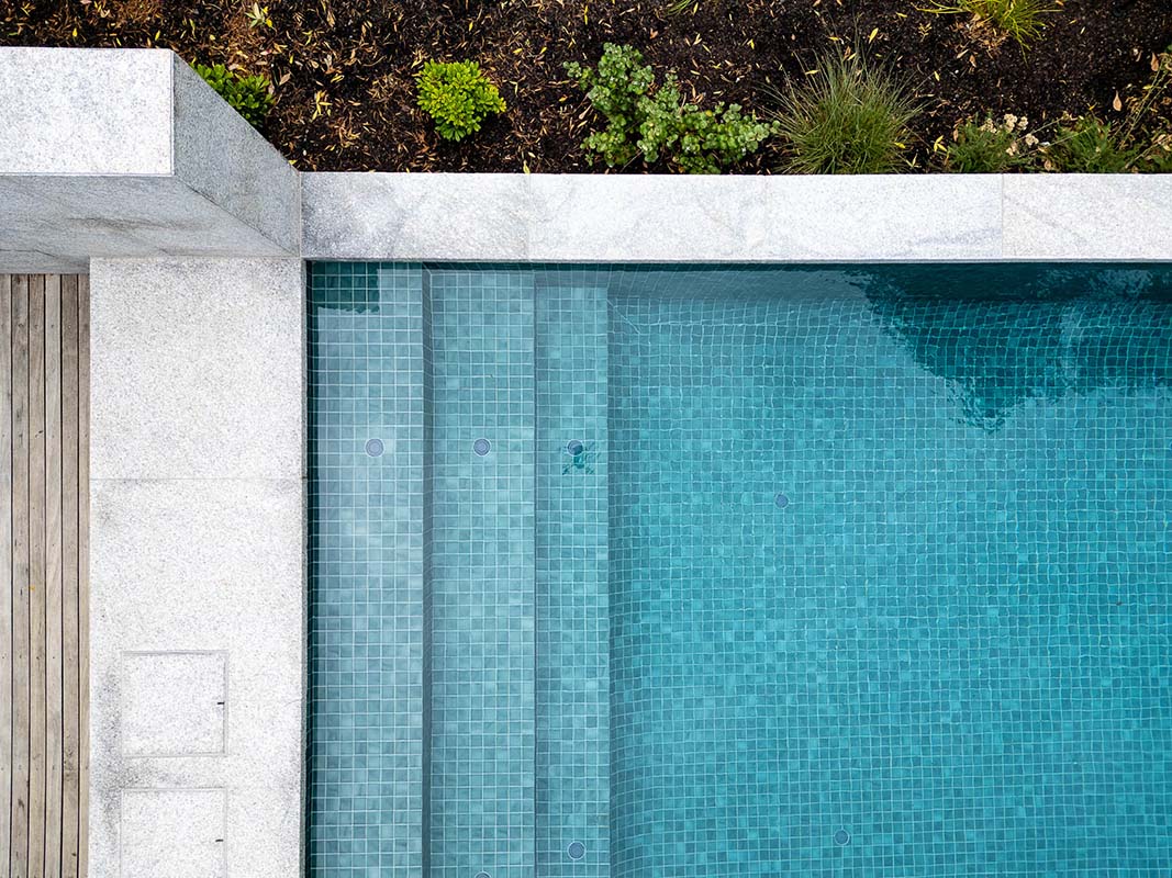 It has a gentle three-dimensional, undulating surface that creates a refined, artistic charm and which looks stunning in a fully tiled pool or on a waterline tile band alongside any shade of green pool water colour.