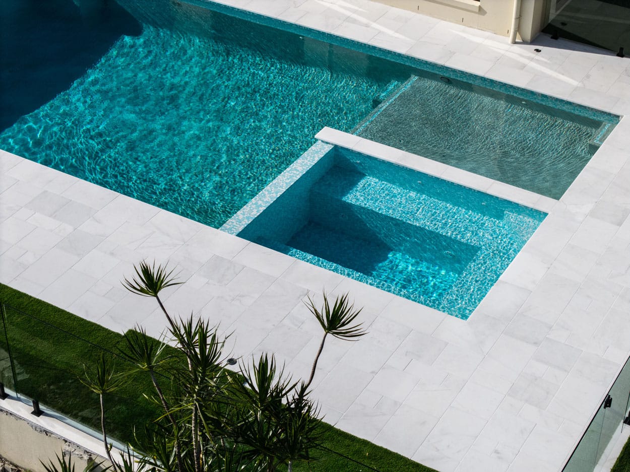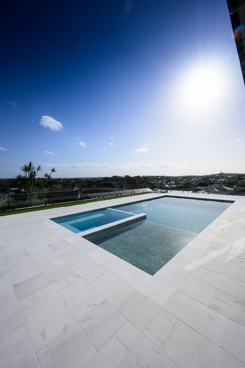 It is primarily an ice-cool white marble aside from charming ‘barely-there’ traces of soft blue-grey patches which complement and soften its appearance. It is cool underfoot and offers moderate slip resistance due to its sandblasted finish. The tumbled edge tiles are accurately sized and easy to lay. Just like Havana’s famous beach clubs built upon the never-ending white sands, Havana White Marble paving tiles around your pool promise to give off ‘heaven on earth’ vibes.
